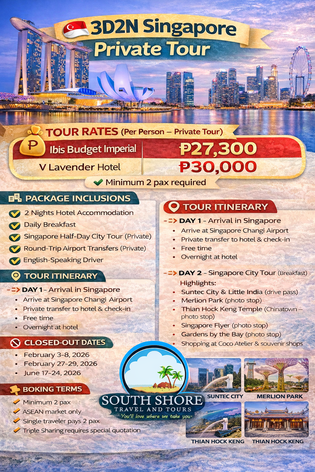 ✔ Minimum 2 pax required
